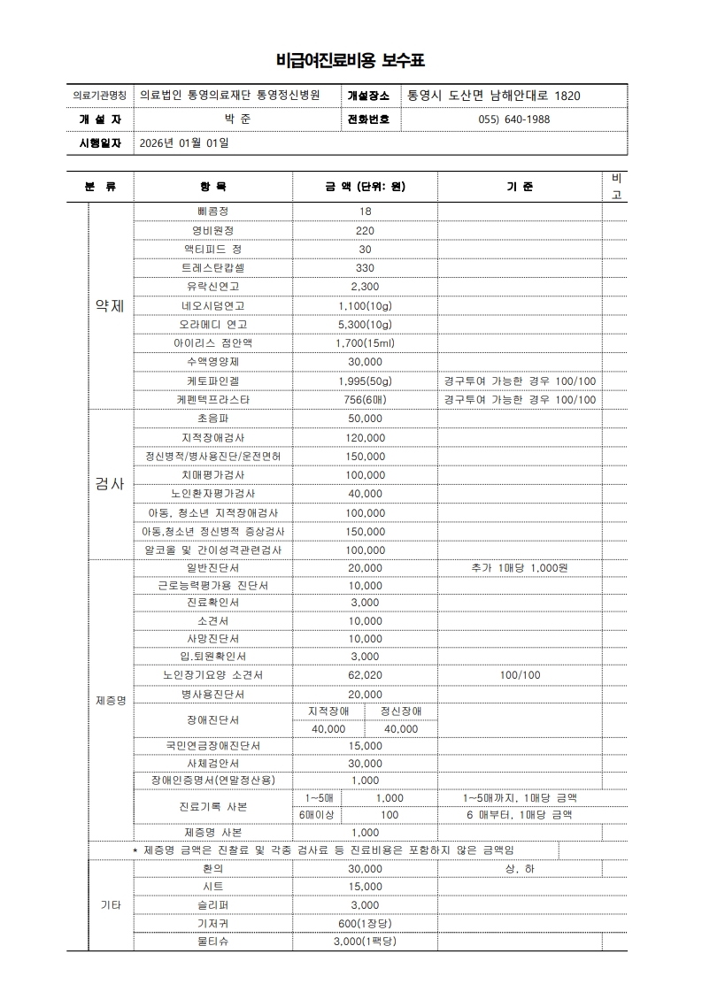 2026³â ºñ±Þ¿© Áø·áºñ¿ë º¸¼öÇ¥